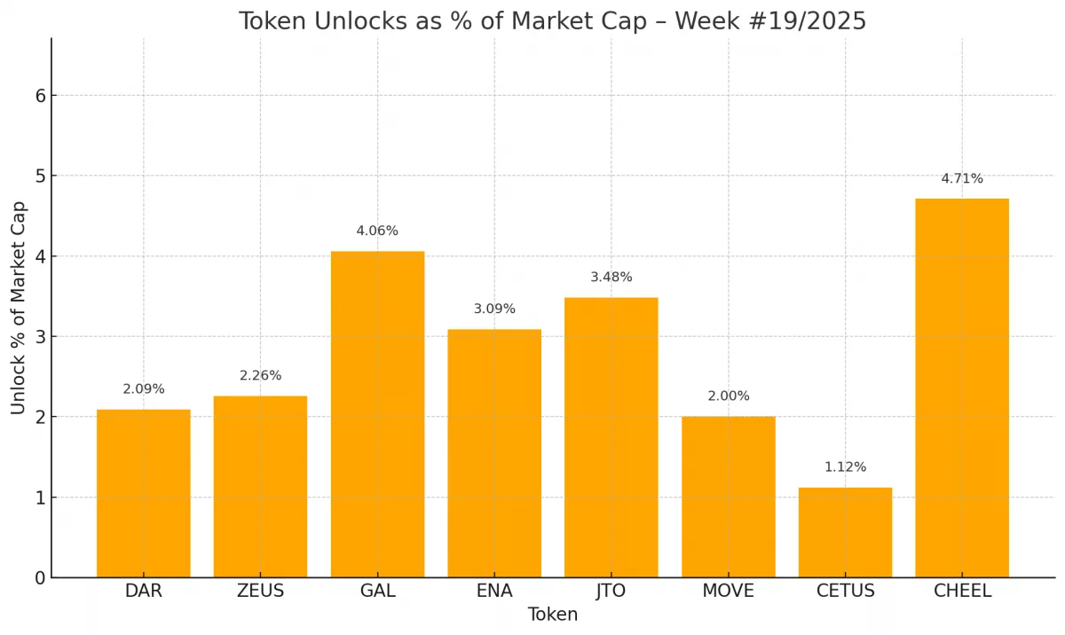 Week #19 brings 8 major token unlocks totaling over $104 million in value โ including well-known names like Ethena (ENA), Galxe (GAL), and Mines of Dalarnia (DAR). From high market cap projects to emerging players, these unlocks could bring volatility, new entry points, or fresh sell pressure.