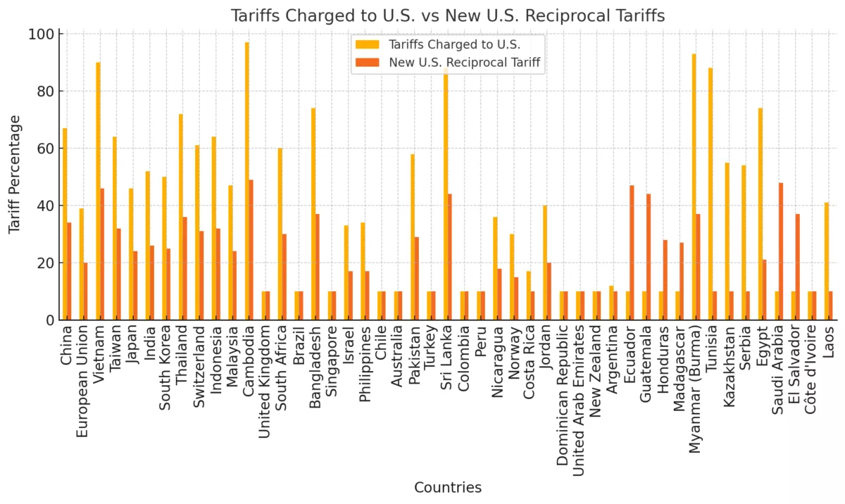 Country | Tariffs Charged to U.S. | New U.S. Reciprocal Tariff |